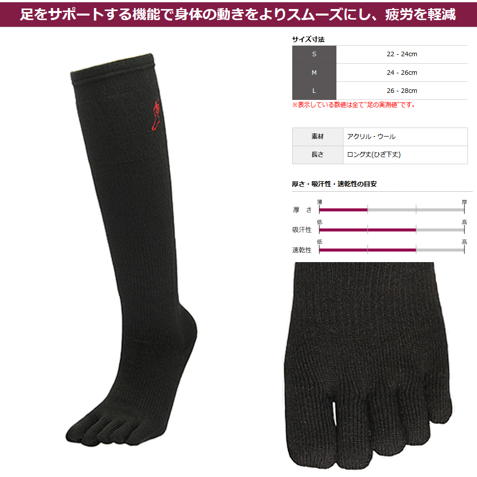 COCOON CLUB 5本指ソックス CS-3L ウール混・スーパースキー(ホット)