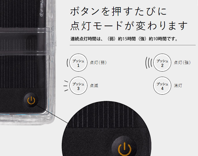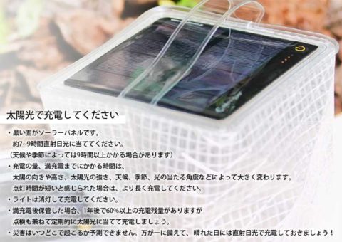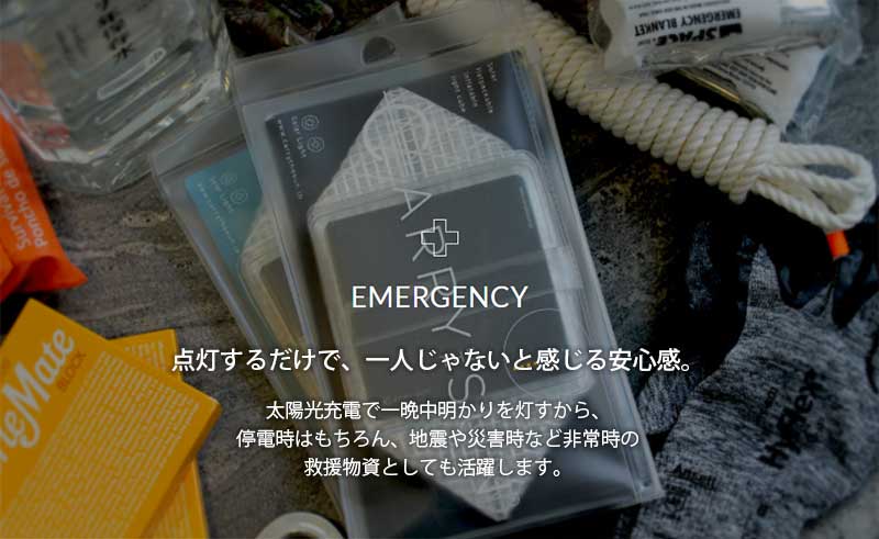 太陽光充電で一晩中明かりを灯すから、停電時はもちろん、地震や災害時など非常時の