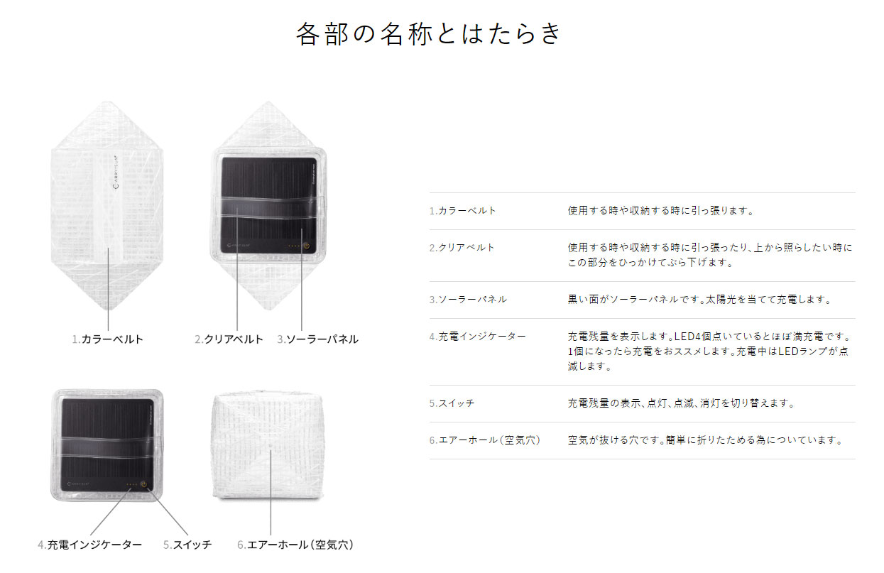 シーンを選ばずに使える、ソーラー充電式、携帯型軽量LEDライトです。