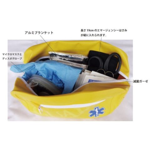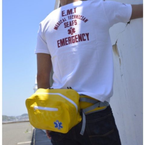 両手がふさがらないヒップバッグはファーストエイドに必要な備品を持ち歩ける容量、防水性が高く汚れもふき取りやすいターポリン生地なので救急救命士のマイバッグとしても人気が高いです。