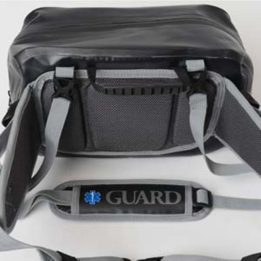 ・背面通気性の良いクッションがあり装着時のストレスも軽減。 取り外し可能なショルダーベルトにもGUARDロゴ入り。