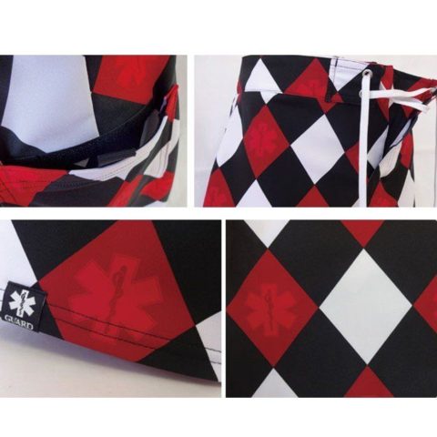 快適に着用出来るよう、伸びの良いストレッチ生地を使用しました。また、ガード活動・救助やトレーニング時などに、余計な引っかかりが出ないように極力シンプルな製法に拘りました。座る、立つ、走る、泳ぐとアクティブな環境での着用に最適です。