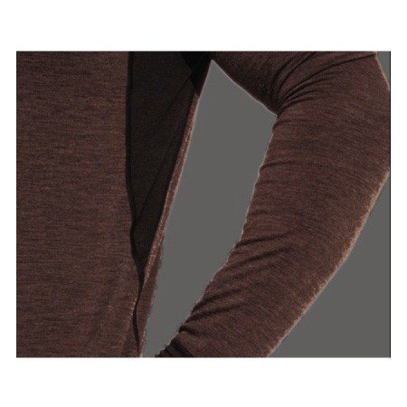自社開発の速乾性特殊繊維とオーストラリア産メリノウール、ポリウレタンを究極の比率でブレンドした高性能ベースレイヤー。柔らかくてチクチクしない肌触りと特性を生かした個所にそれぞれの繊維を使い分けるデザインによって汗を放出し、優れた保温性を保ちます。