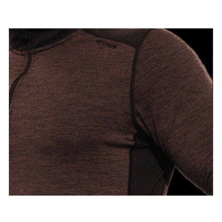 自社開発の速乾性特殊繊維とオーストラリア産メリノウール、ポリウレタンを究極の比率でブレンドした高性能ベースレイヤー。柔らかくてチクチクしない肌触りと特性を生かした個所にそれぞれの繊維を使い分けるデザインによって汗を放出し、優れた保温性を保ちます。