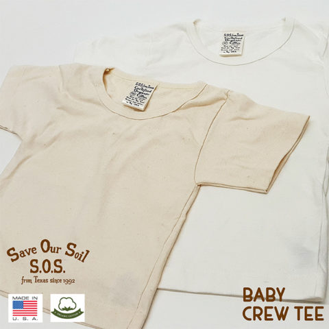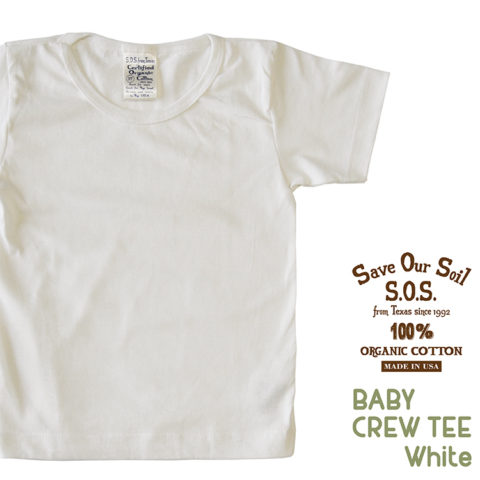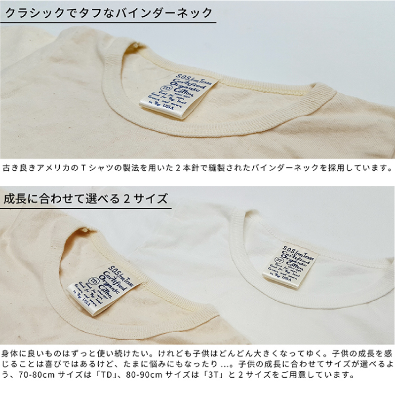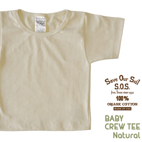 アウトドア キャンプ テント 用品 グッズ オーガニック コットン ティー シャツ ベビー 赤ちゃん プレゼント 出産祝 綿 安心 Tシャツ 無地 生成り クルーネック ナチュラル アメリカ製 白 organic cotton 無農薬 肌に優しい エスオーエス テキサス S.O.S